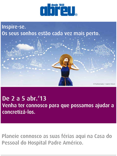 Ao planear as suas férias, ao abrigo do protocolo estabelecido com a Viagens Abreu, S.A., usufrua das vantagens e condições especiais como associado da Casa do Pessoal!