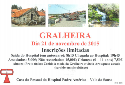 A Casa do Pessoal do Hospital Padre Américo - Vale do Sousa convida os associados, familiares e restante comunidade a participarem no próximo convívio: Gralheira de Montemuro.