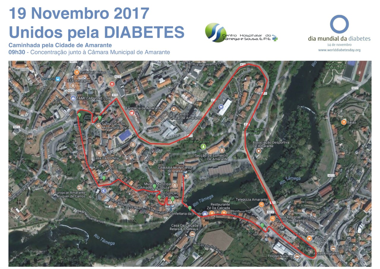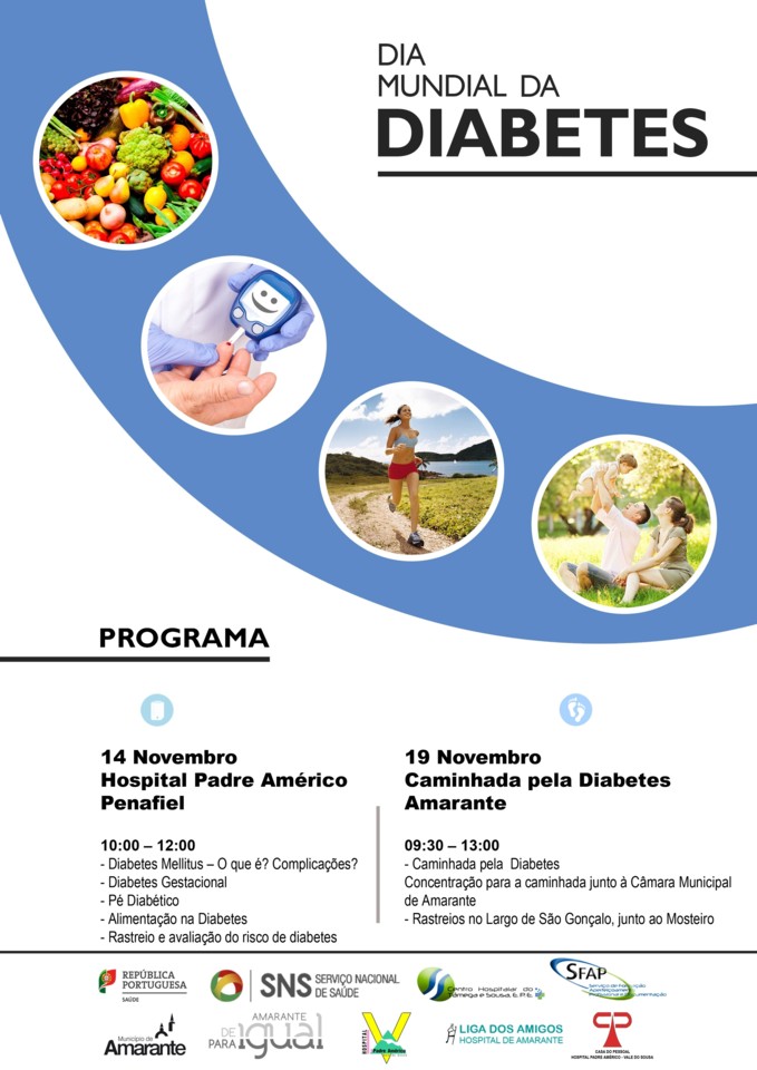 No âmbito das comemorações do Dia Mundial da Diabetes, a Casa do Pessoal do Hospital Padre Américo - Vale do Sousa procede à divulgação do programa junto da comunidade associativa, informando que a caminhada pela Diabetes terá lugar no dia 19 de novembro, com início às 09:30 horas, na Alameda Teixeira de Pascoaes, junto à Câmara Municipal de Amarante.