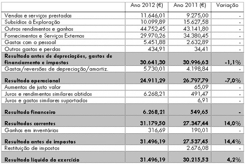 | Ano 2012 (€) | Ano 2011 (€) | Variação |